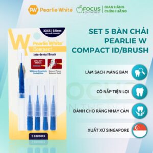 Set 5 Bàn Chải Đánh Răng Pearlie W Compact ID/Brush Làm Sạch Mảng Bám Có Nắp Tiện Lợi Cho Răng Nướu Nhạy Cảm