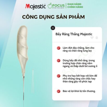 Bẩy Răng Thẳng Majestic Chất Liệu Không Gỉ Làm Chân Răng Lung Lay Giãn Rộng Xương Ổ Răng Bảo Vệ Lợi