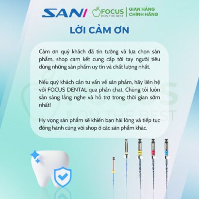 - Tối ưu hóa điều trị nội nha: Cây trâm Sani giúp tiếp cận chính xác và hiệu quả với từng kích thước ống tủy, đảm bảo tốc độ và hiệu quả đồng nhất trong quá trình làm việc.