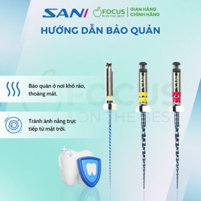 - Linh hoạt và bền bỉ: Được chế tạo với quy trình tinh xảo, cây trâm Sani có độ dẻo cao, giúp giảm thiểu nguy cơ đứt gãy ngay cả khi sử dụng trong các ống tủy cong phức tạp.
